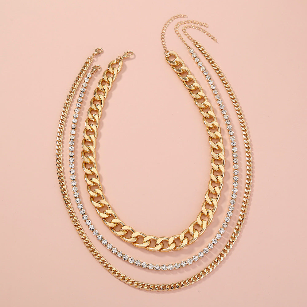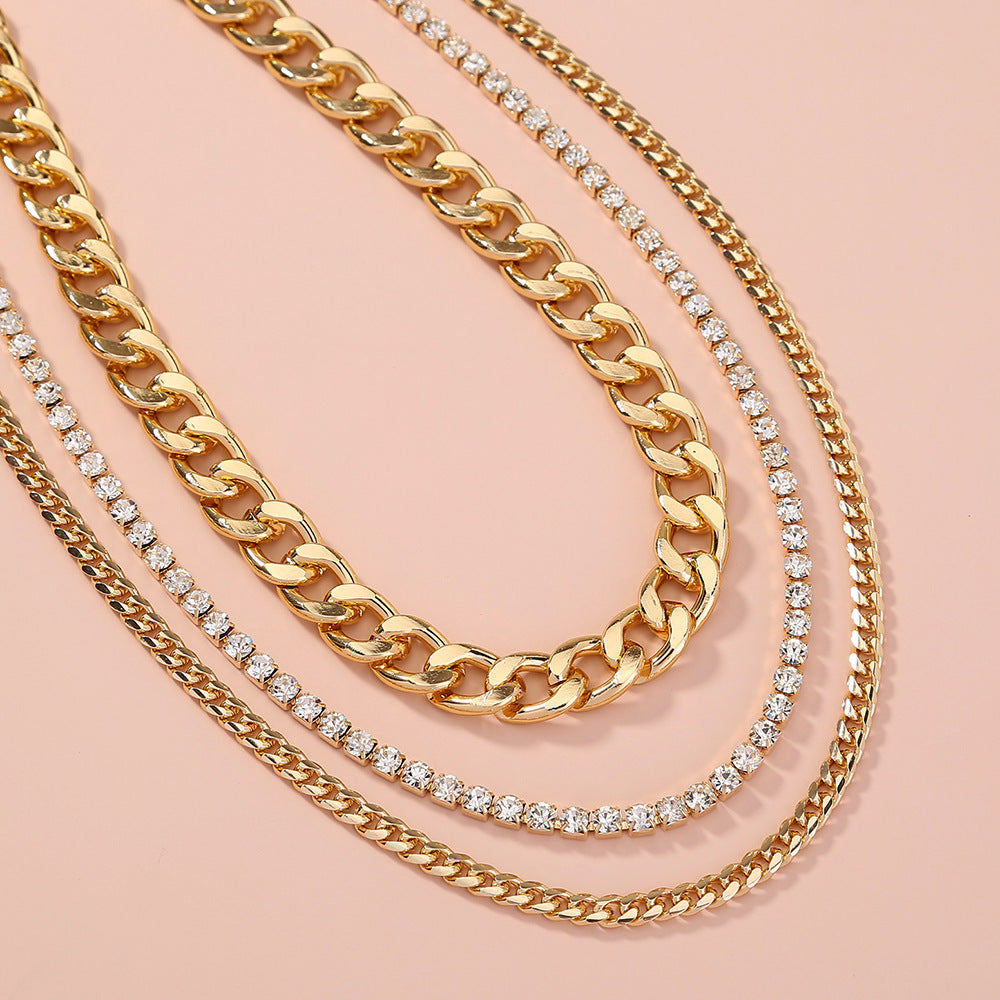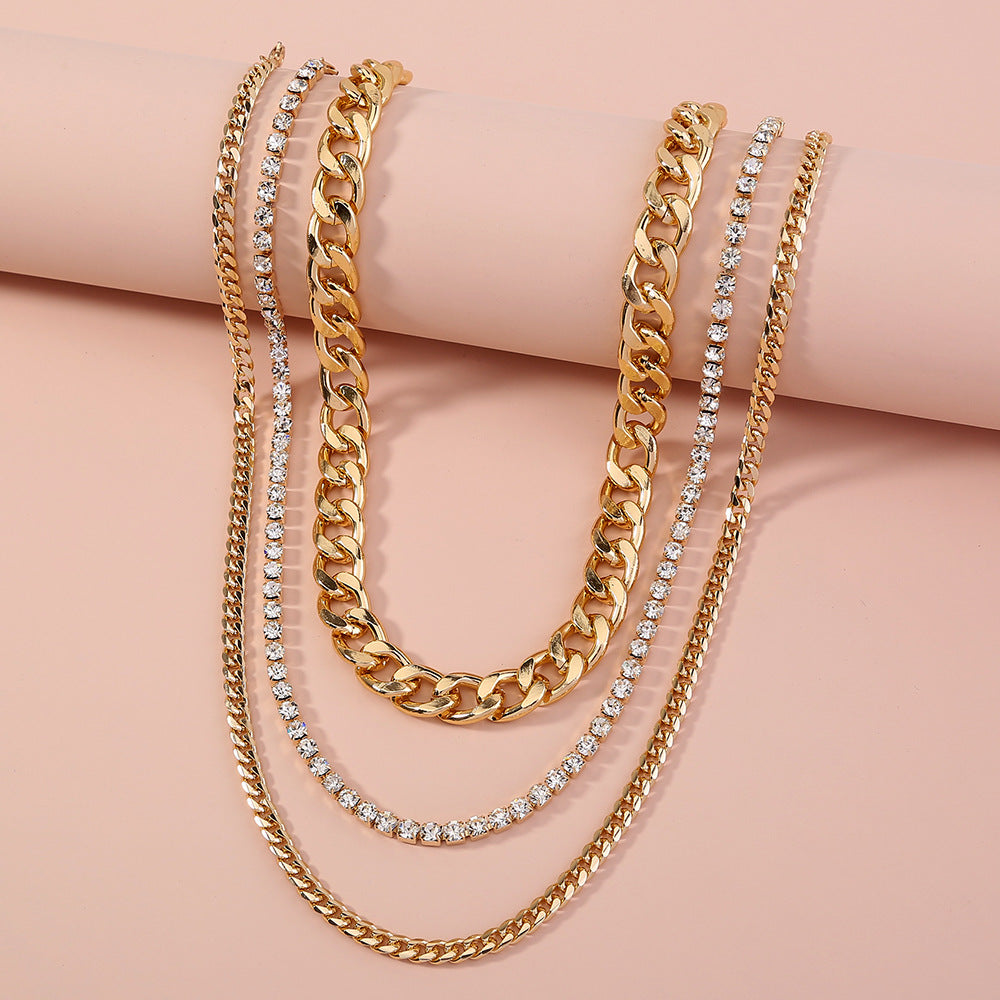 Fashion Classic 3 Layer Gold Color Chocker Necklaces